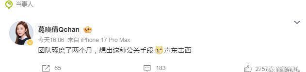 爆料当日,葛晓倩发文斥此为"团队琢磨两个月的公关手段",意图用新话题转移代孕争议。